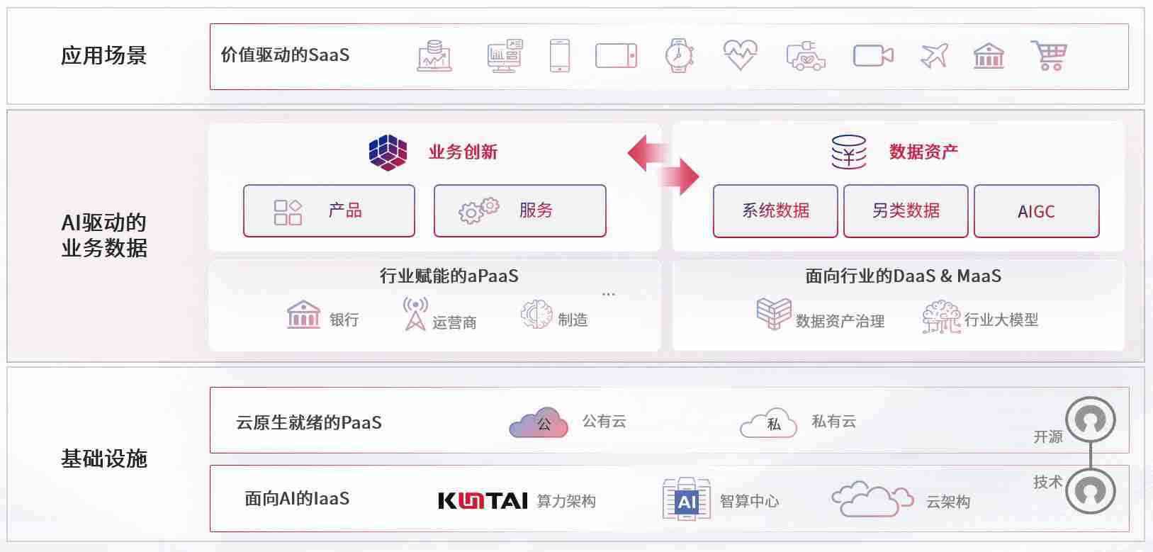 数字时代,,,围绕企业数字化转型的关键要素,,EBPAY钱包官网数码开创性的提出数云融合战略和技术体系框架,,着力在云原生、、、数字原生、、AI原生和信创产业上架构产品和服务能力,,为处在不同数字化转型阶段的快消零售、、汽车、、、、金融、、、医疗、、政企、、、教育、、运营商等行业客户提供泛在的敏捷IT能力和融合的数据驱动能力,,构建跨界融合创新的数字业务场景和新业务模式,,,助力企业级客户建立面向未来的核心能力和竞争优势,,全面推动社会的数字化、、、、智能化转型升级。。。